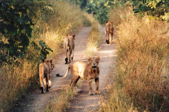 गुजरात के 14 शेरों का झुंड एक साथ, वायरल हो रहा है वीडियो