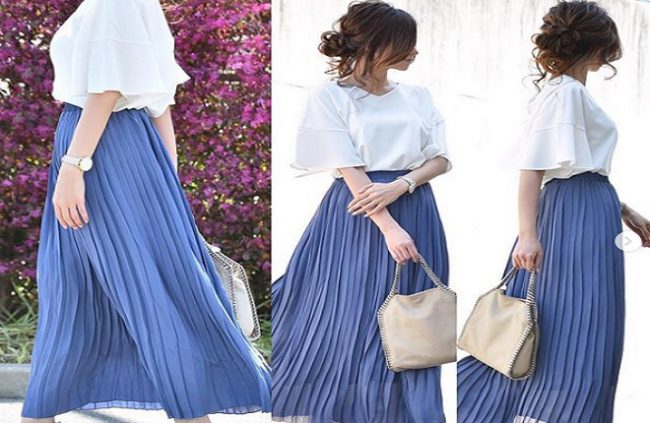 1. लाइट वाइट कलर के साथ ट्राई करें ब्लू लौंग स्कर्ट